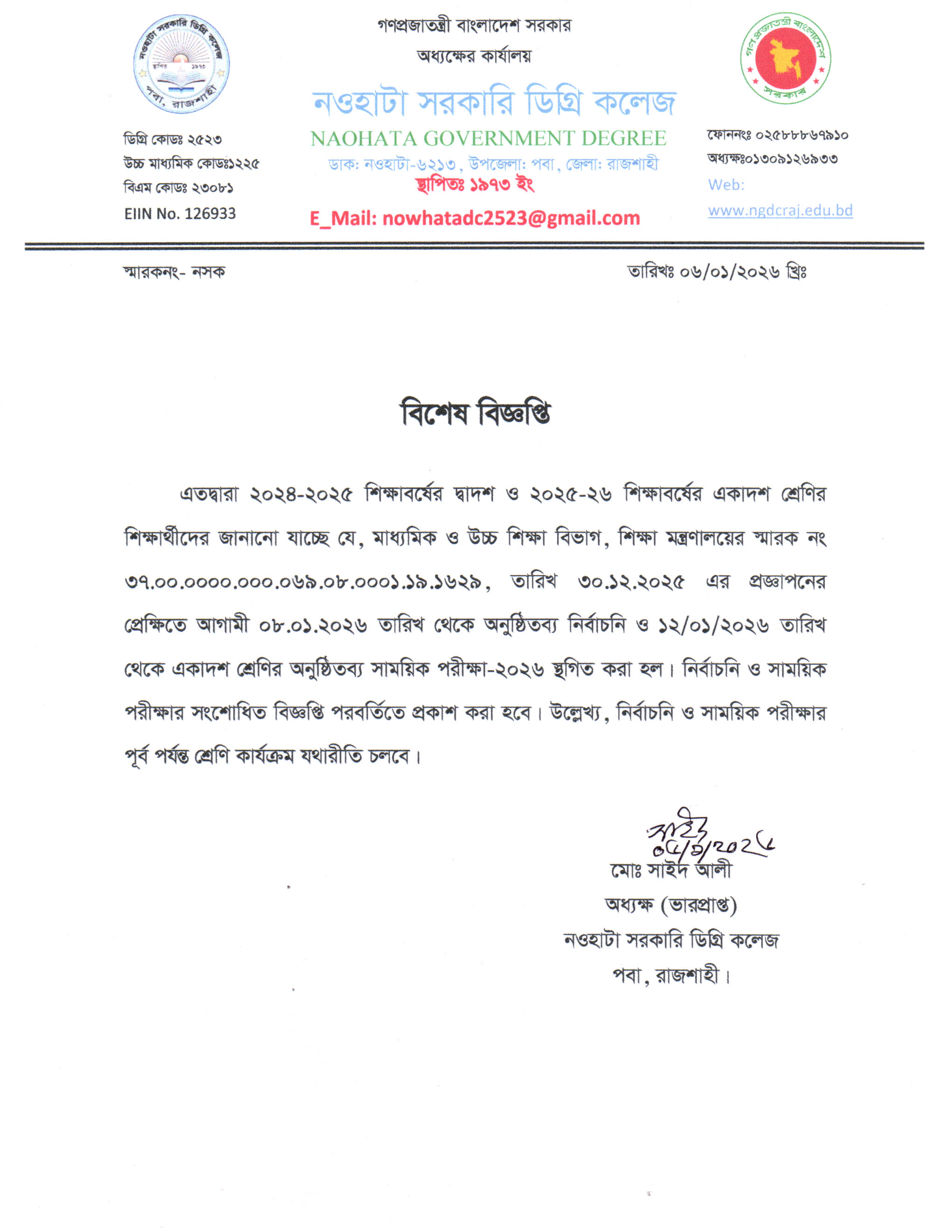 নওহাটা সরকারি ডিগ্রি কলেজটি রাজশাহী জেলা সদর থেকে মাত্র ১০ কি:মি: দূরে রাজশাহী নওগাঁ মহাসড়কের ধারে শাহ্মখদুম বিমানবন্দরের উত্তরদিকে নওহাটা নামক স্থানে একটি মনোরম পরিবেশে অবস্থিত। ১৯৭৩ সালে প্রতিষ্ঠিত কলেজটির তখন নাম ছিল নওহাটা মহাবিদ্যালয়। প্রধানমন্ত্রী জননেত্রী শেখ হাসিনার প্রতি উপজেলায় একটি করে কলেজ সরকারি করণের ঘোষনার ফলে ২০১৮ সালের ৮ আগষ্ট কলেজটি “নওহাটা সরকারি ডিগ্রি কলেজ” নামে গেজেটভুক্ত হয়। ...