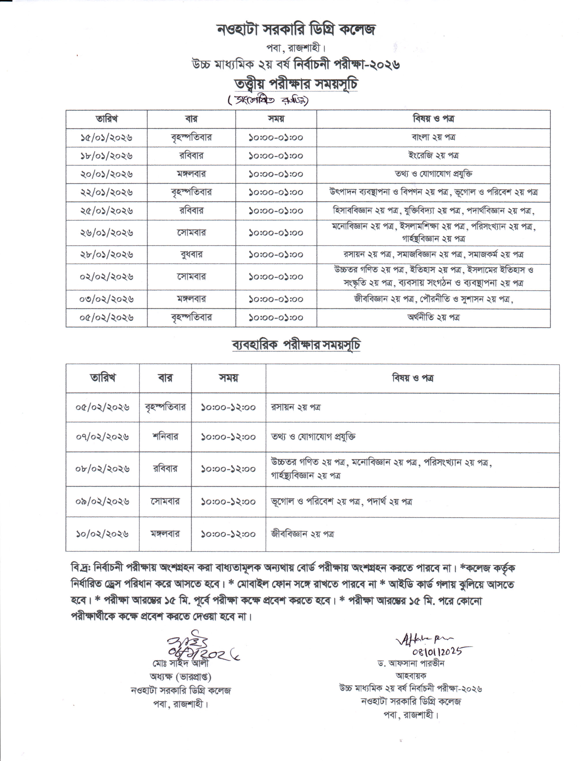 উচ্চ মাধ্যমিক ২য় বর্ষ নির্বাচনী পরীক্ষার -২০২৬ এর সংশোধিত সময়সূচি