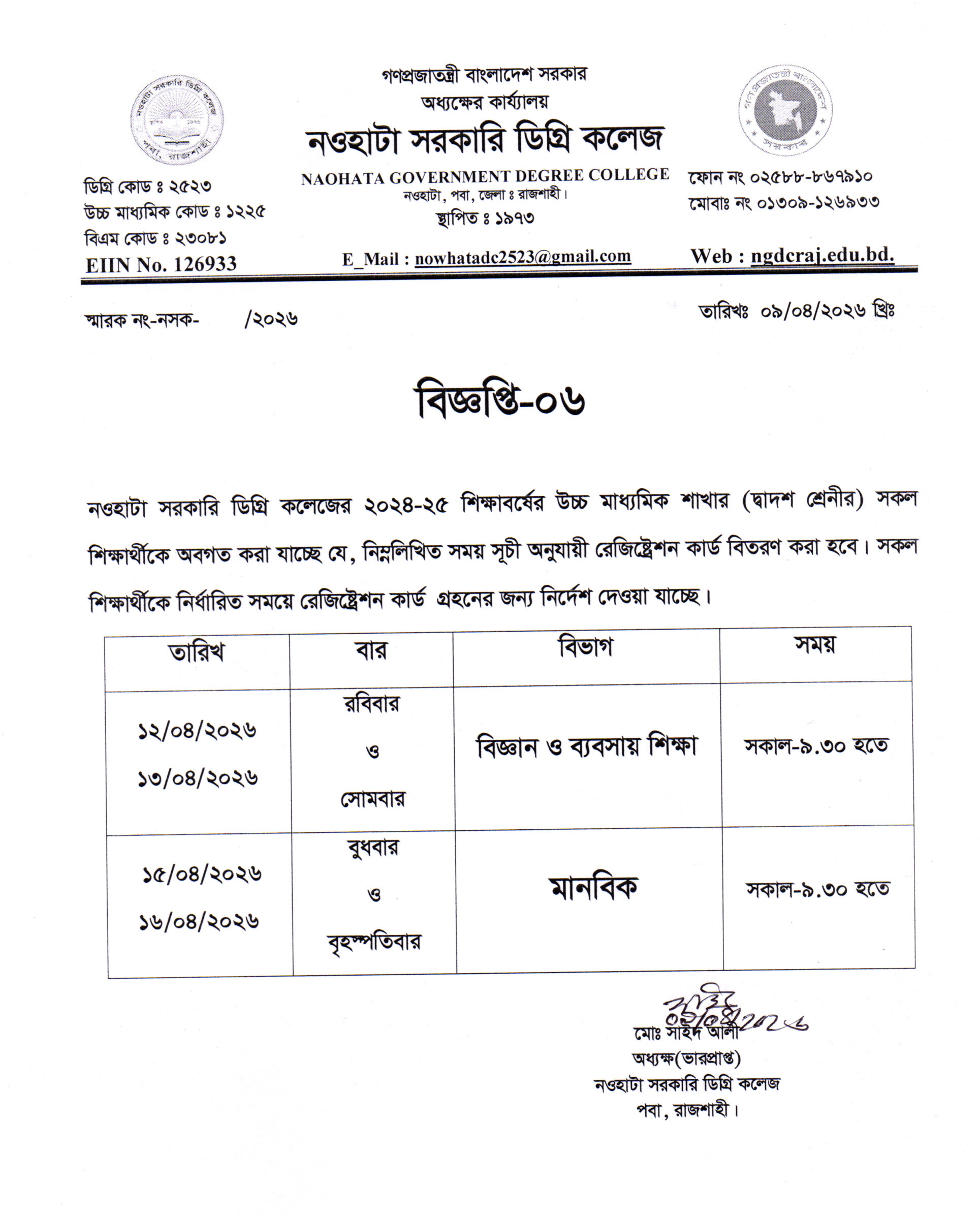 নওহাটা সরকারি ডিগ্রি কলেজটি রাজশাহী জেলা সদর থেকে মাত্র ১০ কি:মি: দূরে রাজশাহী নওগাঁ মহাসড়কের ধারে শাহ্মখদুম বিমানবন্দরের উত্তরদিকে নওহাটা নামক স্থানে একটি মনোরম পরিবেশে অবস্থিত। ১৯৭৩ সালে প্রতিষ্ঠিত কলেজটির তখন নাম ছিল নওহাটা মহাবিদ্যালয়। প্রধানমন্ত্রী জননেত্রী শেখ হাসিনার প্রতি উপজেলায় একটি করে কলেজ সরকারি করণের ঘোষনার ফলে ২০১৮ সালের ৮ আগষ্ট কলেজটি “নওহাটা সরকারি ডিগ্রি কলেজ” নামে গেজেটভুক্ত হয়। ...