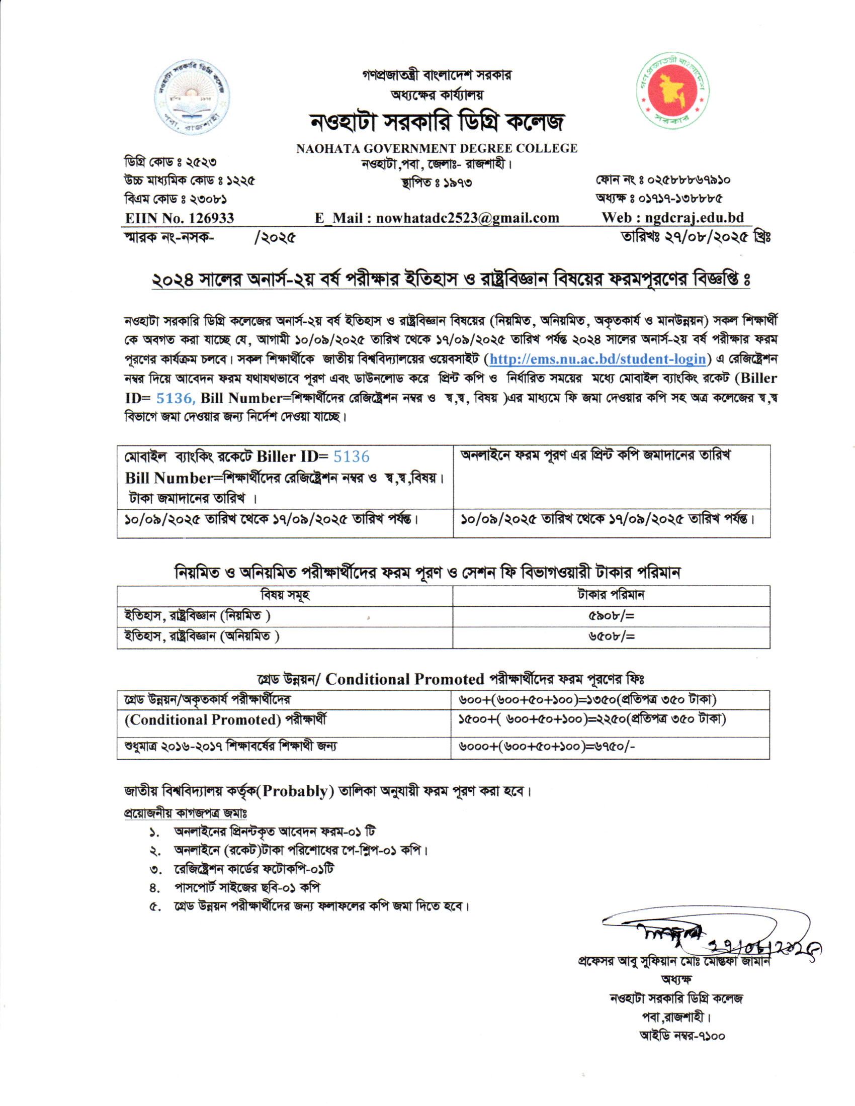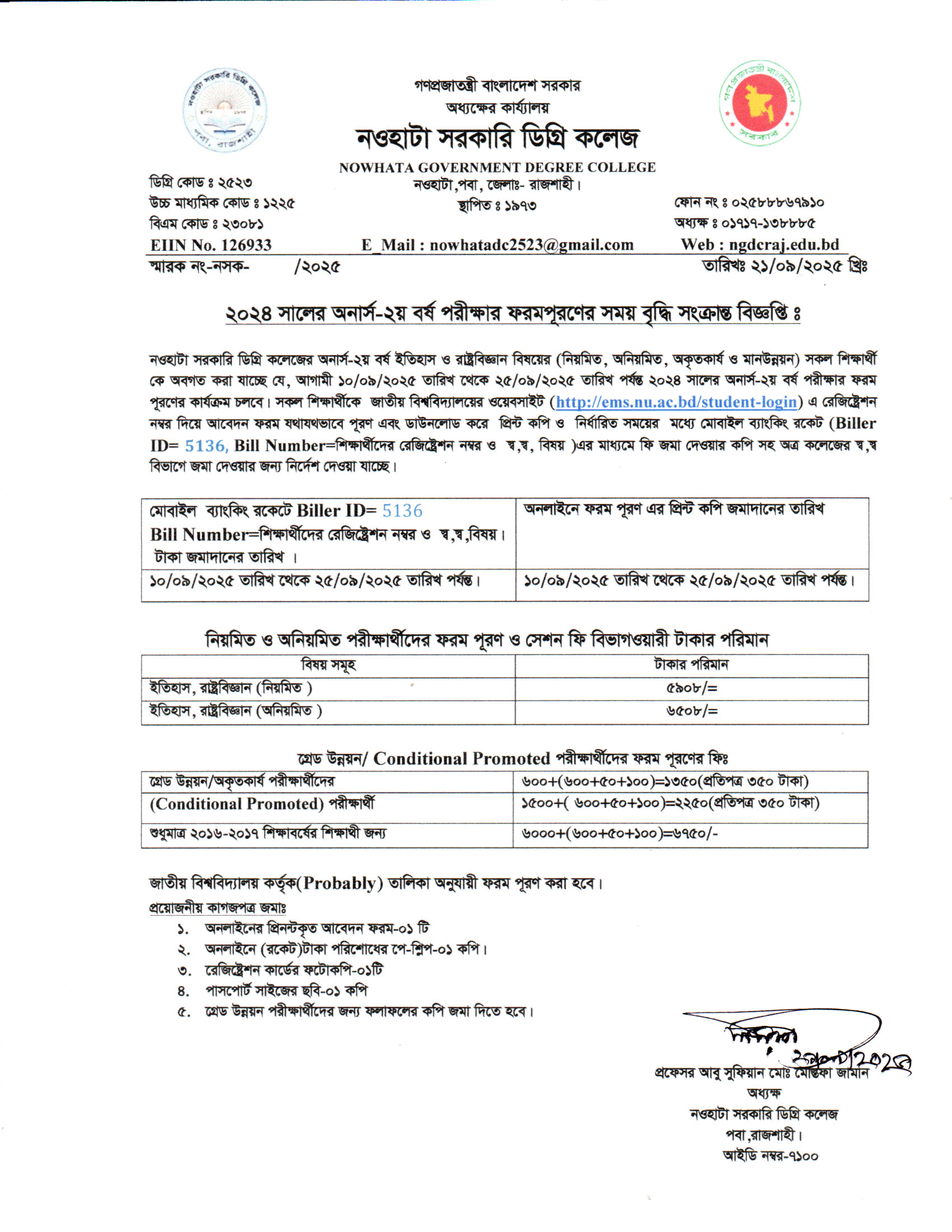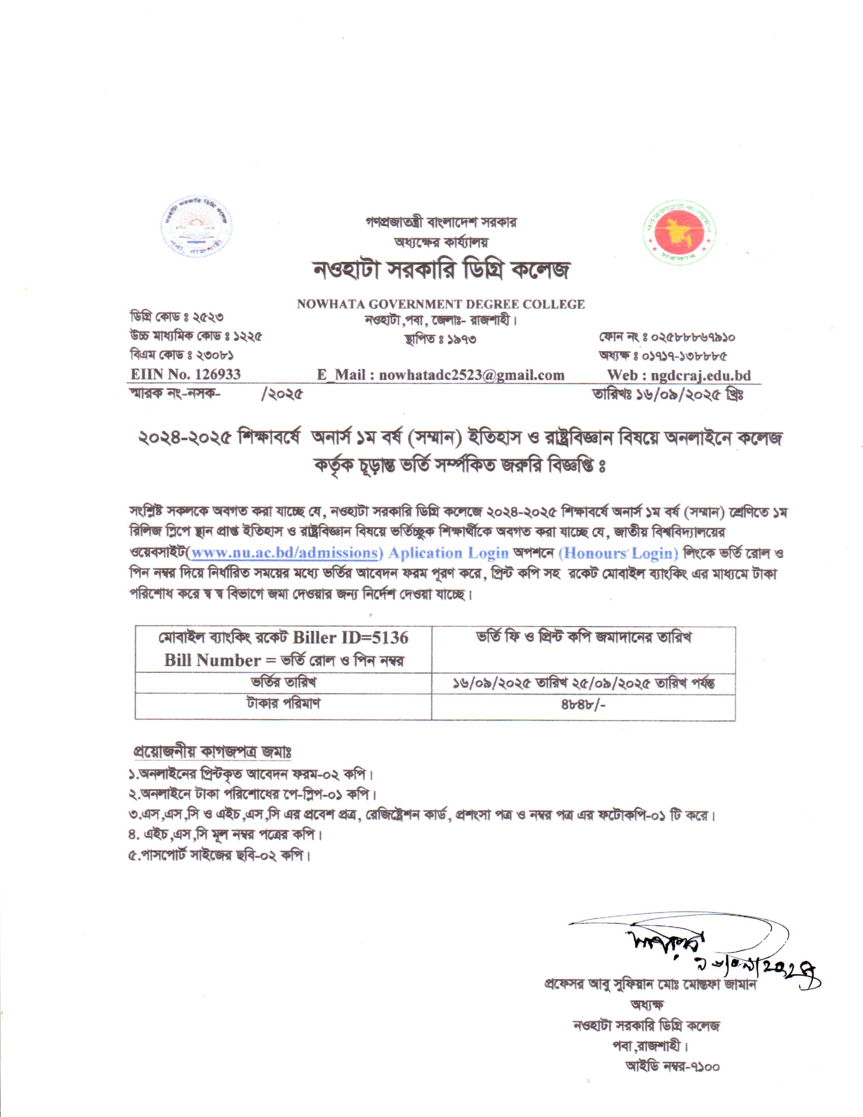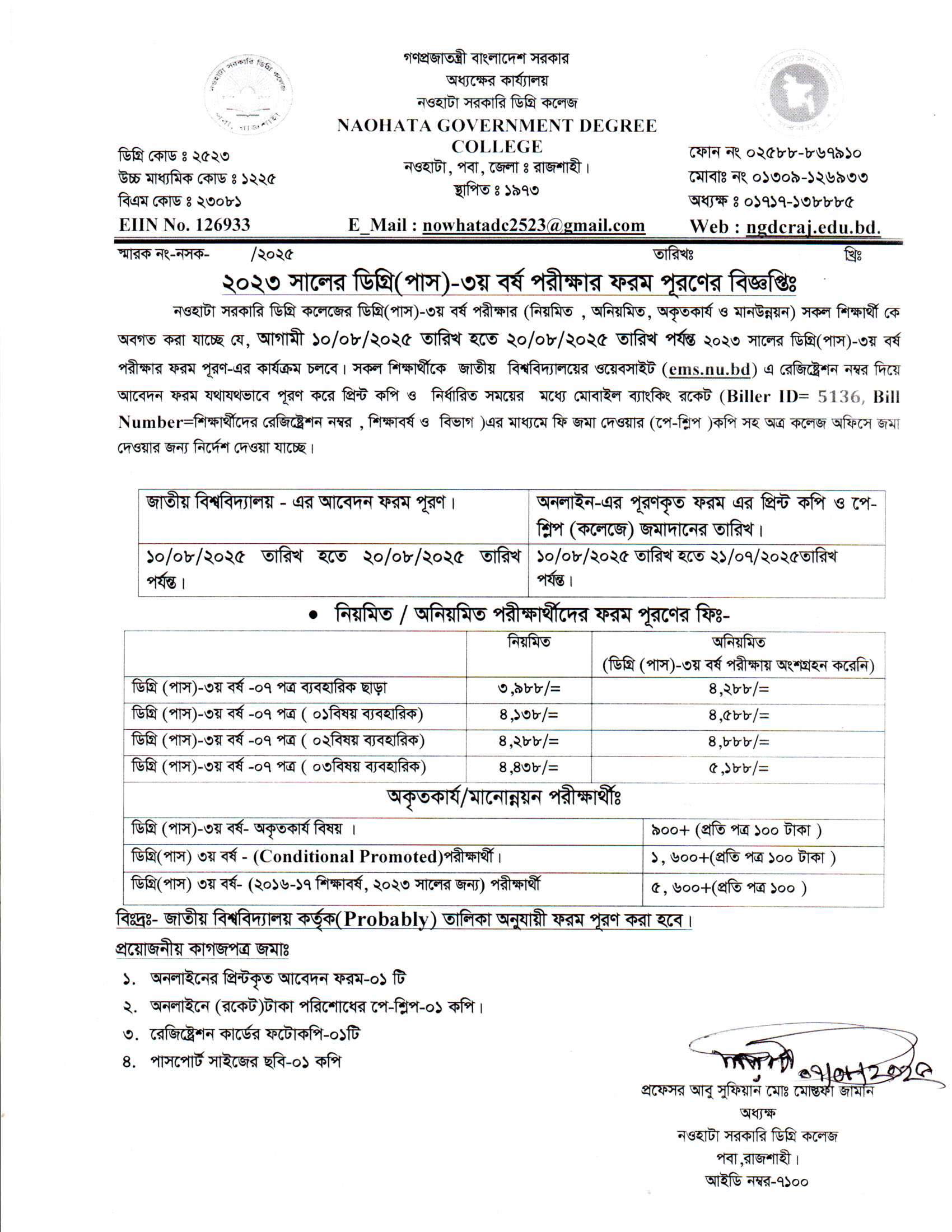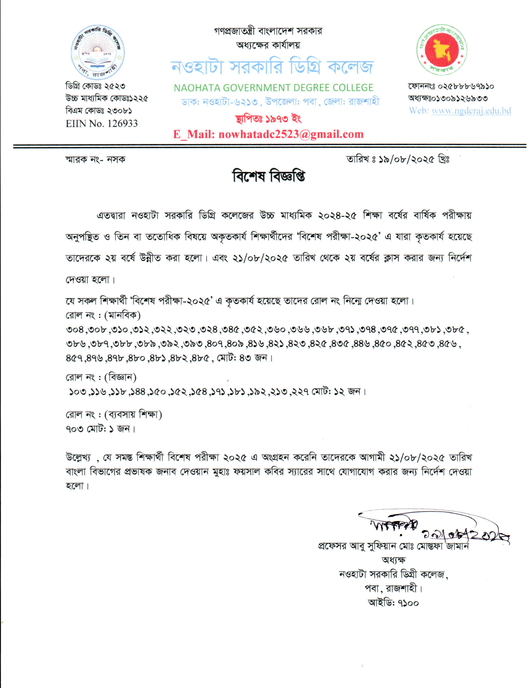 নওহাটা সরকারি ডিগ্রি কলেজের সকল শিক্ষার্থীর অবগতির জন্য |