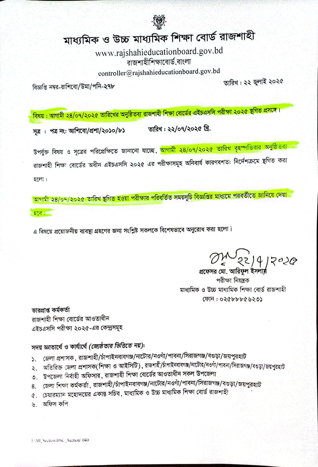 উচ্চ মাধ্যমিক শিক্ষা বর্ষ ২০২৪-২৫ এর বিশেষ পরীক্ষার ফলাফল সংক্রান্ত। |