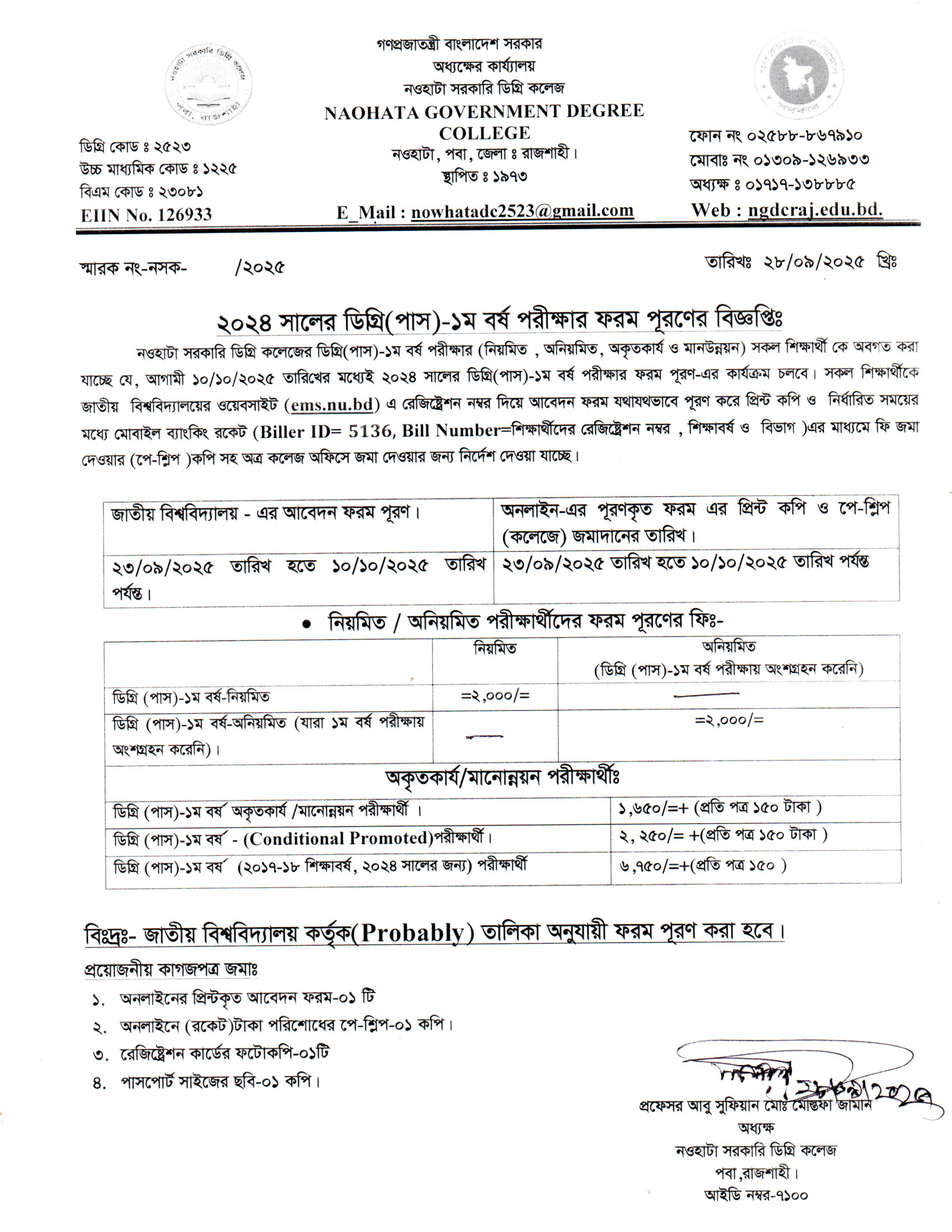 ২০২৪ সালের ডিগ্রি (পাস) ১ম বর্ষ পরীক্ষার ফরম পূরণের সময় বৃদ্ধি সংক্রান্ত |