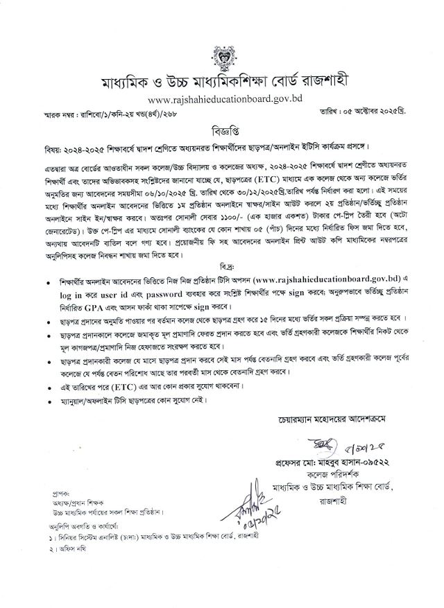 ২০২৪-২৫ শিক্ষাবর্ষের অনলাইন TC সংক্রান্ত। |