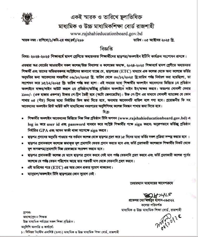 ২০২৪-২০২৫ শিক্ষাবর্ষে দ্বাদশ শ্রেণিতে অধ্যয়নরত শিক্ষার্থীদের বিভাগ ও বিষয় পরিবর্তন প্রসঙ্গে। |