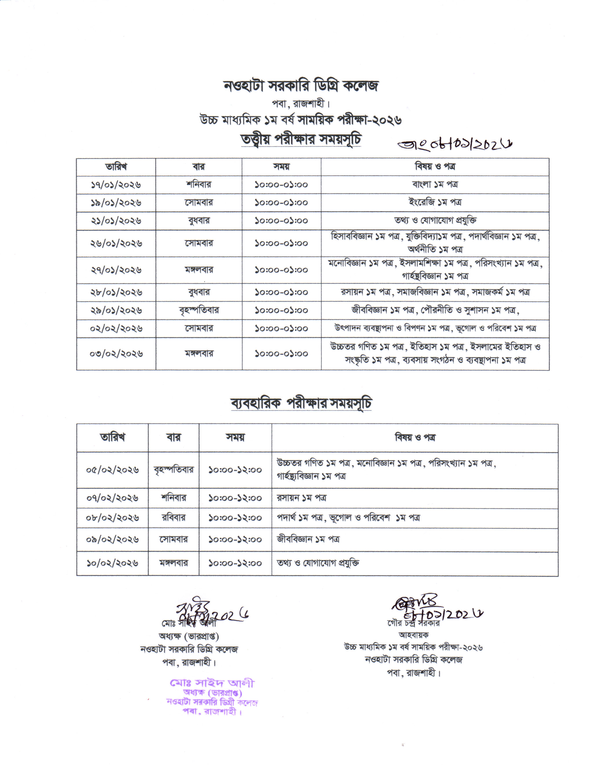 উচ্চ মাধ্যমিক ১ম বর্ষ সাময়িক পরীক্ষার -২০২৬ এর সংশোধিত সময়সূচি