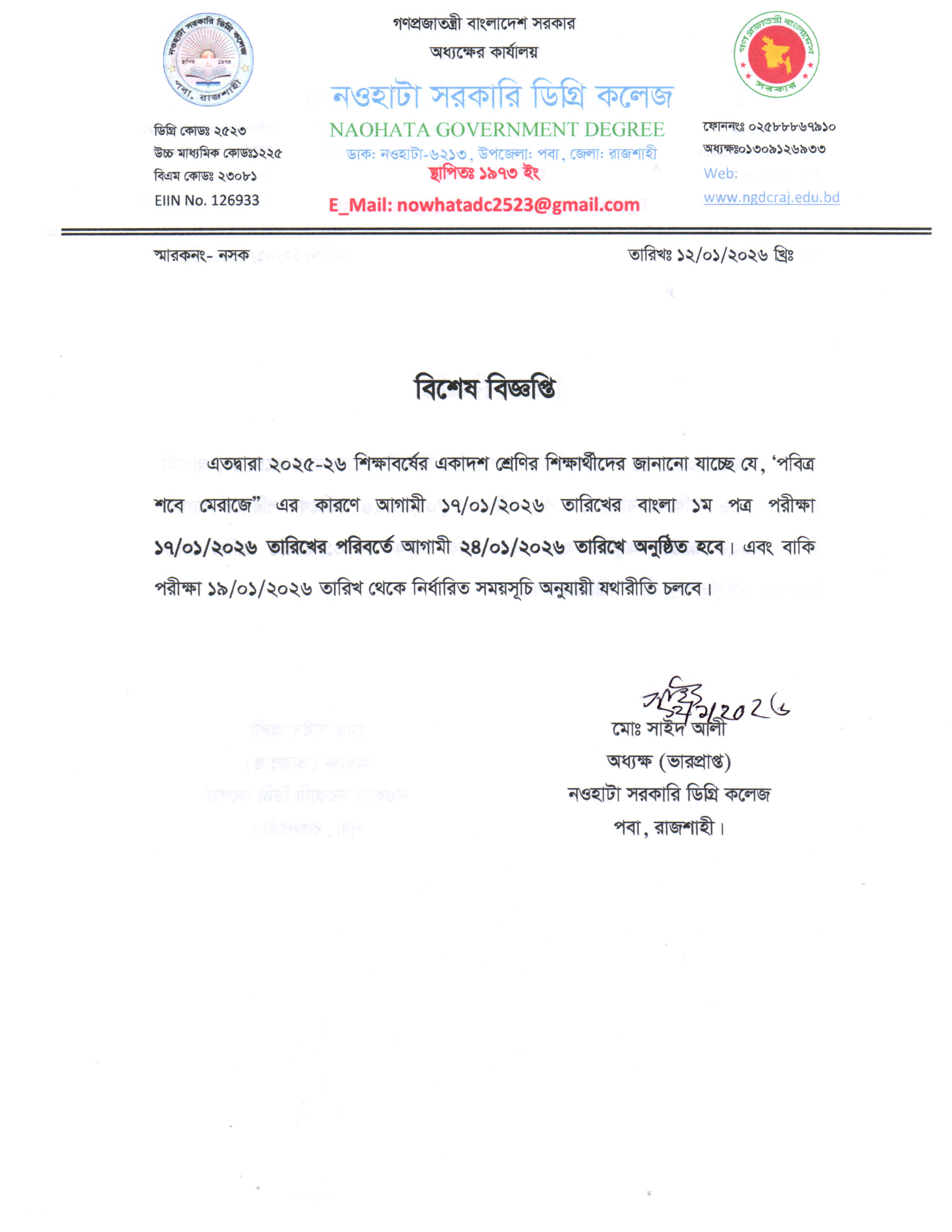 নওহাটা সরকারি ডিগ্রি কলেজের সকল শিক্ষক-কর্মচারীদের অবগতি করা যাচ্ছে |
