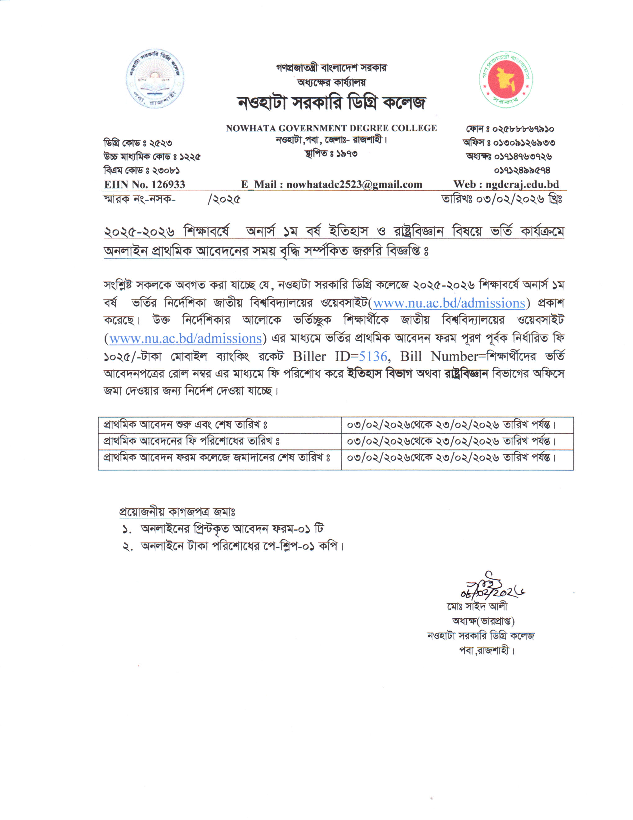 নওহাটা সরকারি ডিগ্রি কলেজটি রাজশাহী জেলা সদর থেকে মাত্র ১০ কি:মি: দূরে রাজশাহী নওগাঁ মহাসড়কের ধারে শাহ্মখদুম বিমানবন্দরের উত্তরদিকে নওহাটা নামক স্থানে একটি মনোরম পরিবেশে অবস্থিত। ১৯৭৩ সালে প্রতিষ্ঠিত কলেজটির তখন নাম ছিল নওহাটা মহাবিদ্যালয়। প্রধানমন্ত্রী জননেত্রী শেখ হাসিনার প্রতি উপজেলায় একটি করে কলেজ সরকারি করণের ঘোষনার ফলে ২০১৮ সালের ৮ আগষ্ট কলেজটি “নওহাটা সরকারি ডিগ্রি কলেজ” নামে গেজেটভুক্ত হয়। ...