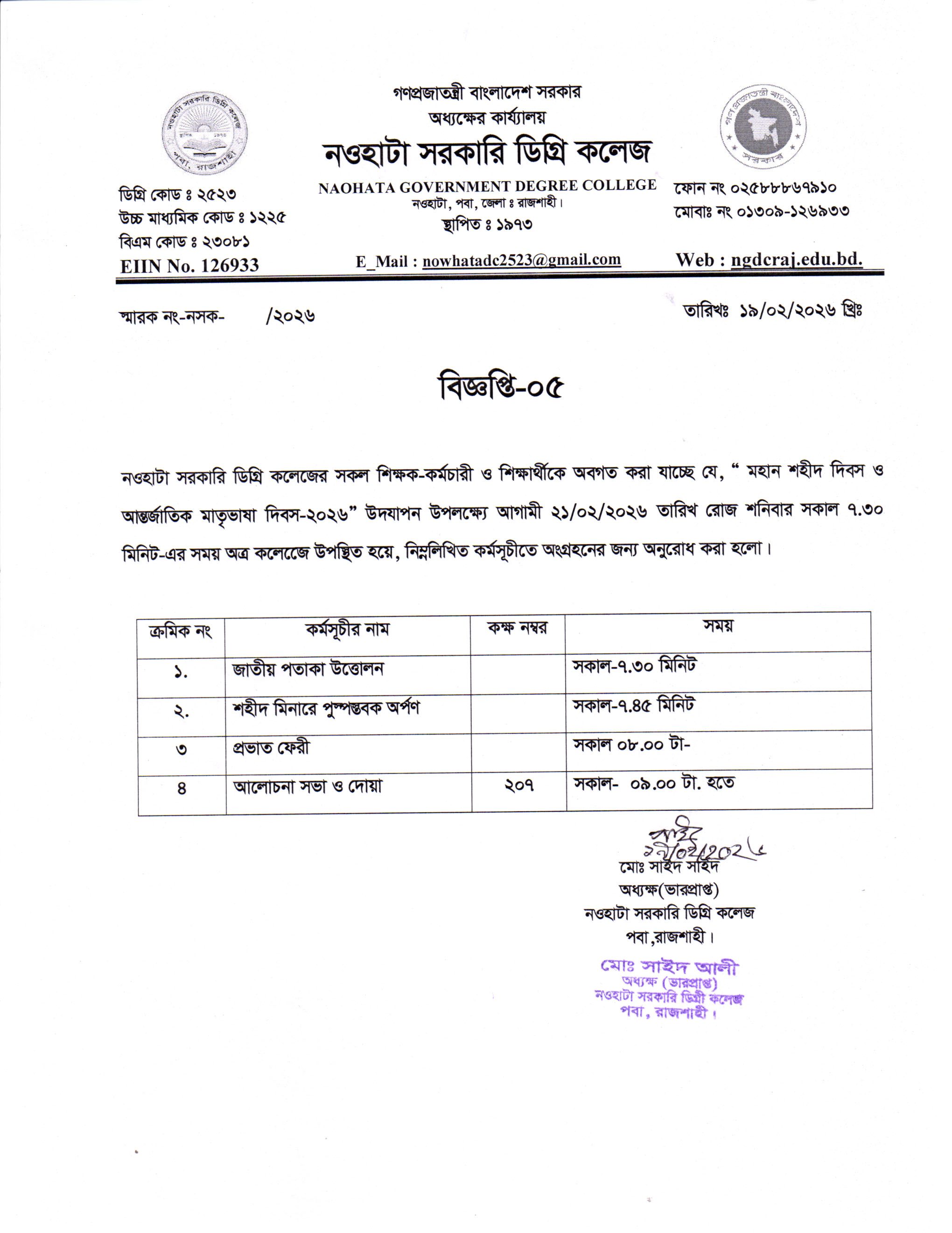 নওহাটা সরকারি ডিগ্রি কলেজটি রাজশাহী জেলা সদর থেকে মাত্র ১০ কি:মি: দূরে রাজশাহী নওগাঁ মহাসড়কের ধারে শাহ্মখদুম বিমানবন্দরের উত্তরদিকে নওহাটা নামক স্থানে একটি মনোরম পরিবেশে অবস্থিত। ১৯৭৩ সালে প্রতিষ্ঠিত কলেজটির তখন নাম ছিল নওহাটা মহাবিদ্যালয়। প্রধানমন্ত্রী জননেত্রী শেখ হাসিনার প্রতি উপজেলায় একটি করে কলেজ সরকারি করণের ঘোষনার ফলে ২০১৮ সালের ৮ আগষ্ট কলেজটি “নওহাটা সরকারি ডিগ্রি কলেজ” নামে গেজেটভুক্ত হয়। ...
