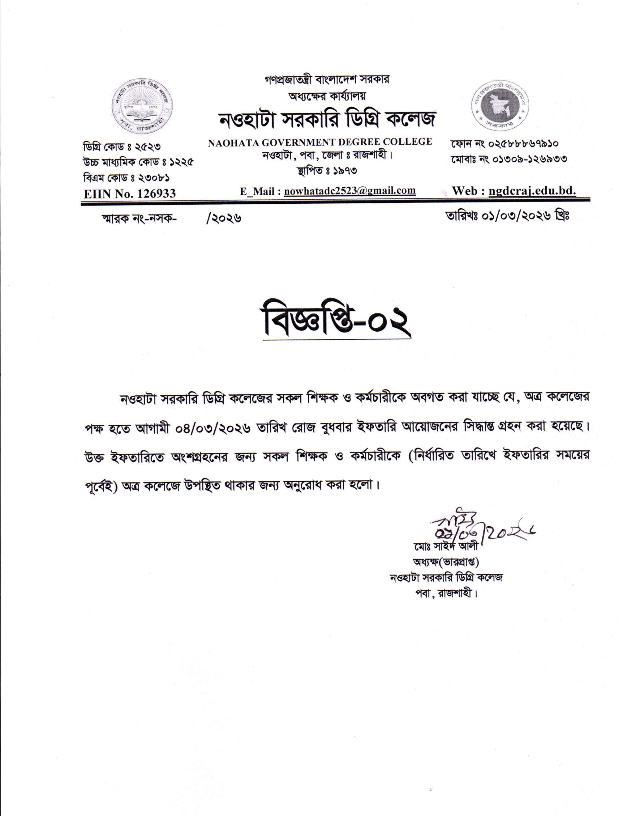 নওহাটা সরকারি ডিগ্রি কলেজটি রাজশাহী জেলা সদর থেকে মাত্র ১০ কি:মি: দূরে রাজশাহী নওগাঁ মহাসড়কের ধারে শাহ্মখদুম বিমানবন্দরের উত্তরদিকে নওহাটা নামক স্থানে একটি মনোরম পরিবেশে অবস্থিত। ১৯৭৩ সালে প্রতিষ্ঠিত কলেজটির তখন নাম ছিল নওহাটা মহাবিদ্যালয়। প্রধানমন্ত্রী জননেত্রী শেখ হাসিনার প্রতি উপজেলায় একটি করে কলেজ সরকারি করণের ঘোষনার ফলে ২০১৮ সালের ৮ আগষ্ট কলেজটি “নওহাটা সরকারি ডিগ্রি কলেজ” নামে গেজেটভুক্ত হয়। ...