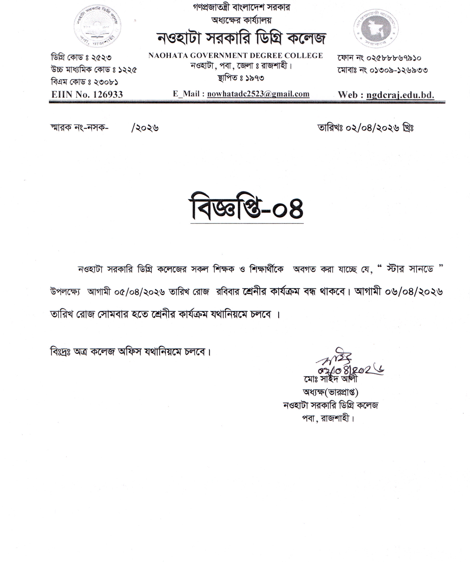 ‘স্টার সানডে’ উপলক্ষ্যে ছুটি সংক্রান্ত